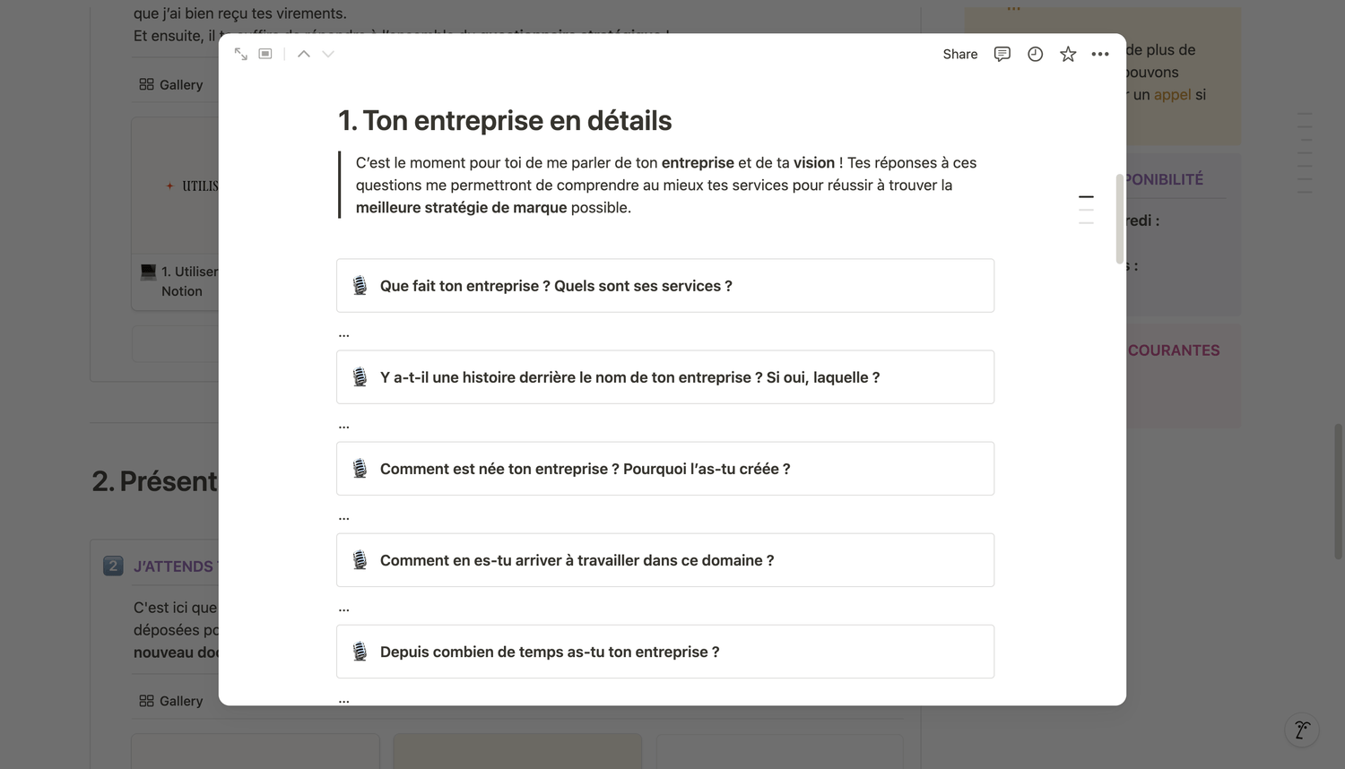 ✦Questionnaire stratégique complet pour récolter un maximum d’informations sur le projet.