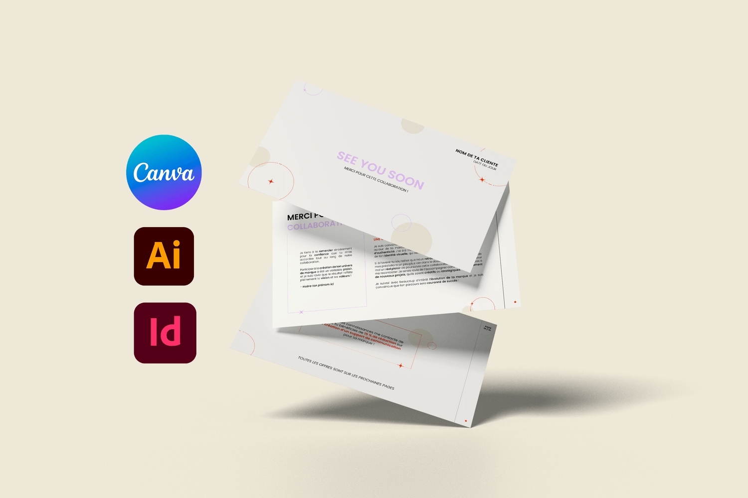 - ✓Dossier ZIP avec fichier Adobe InDesign, Adobe Illustrator et Canva