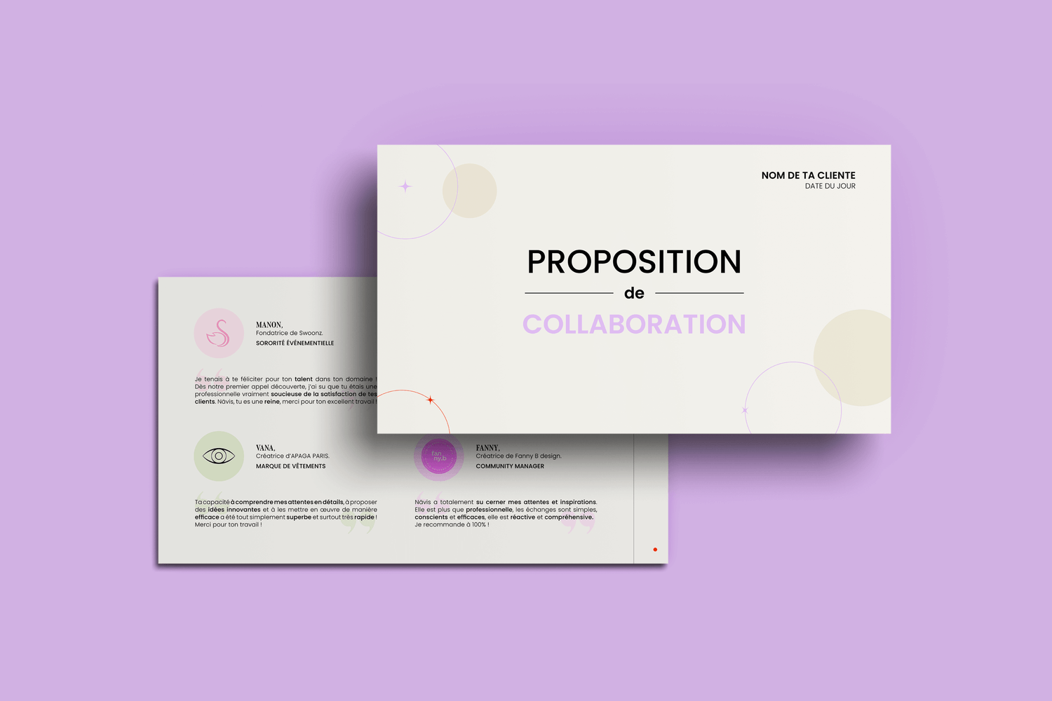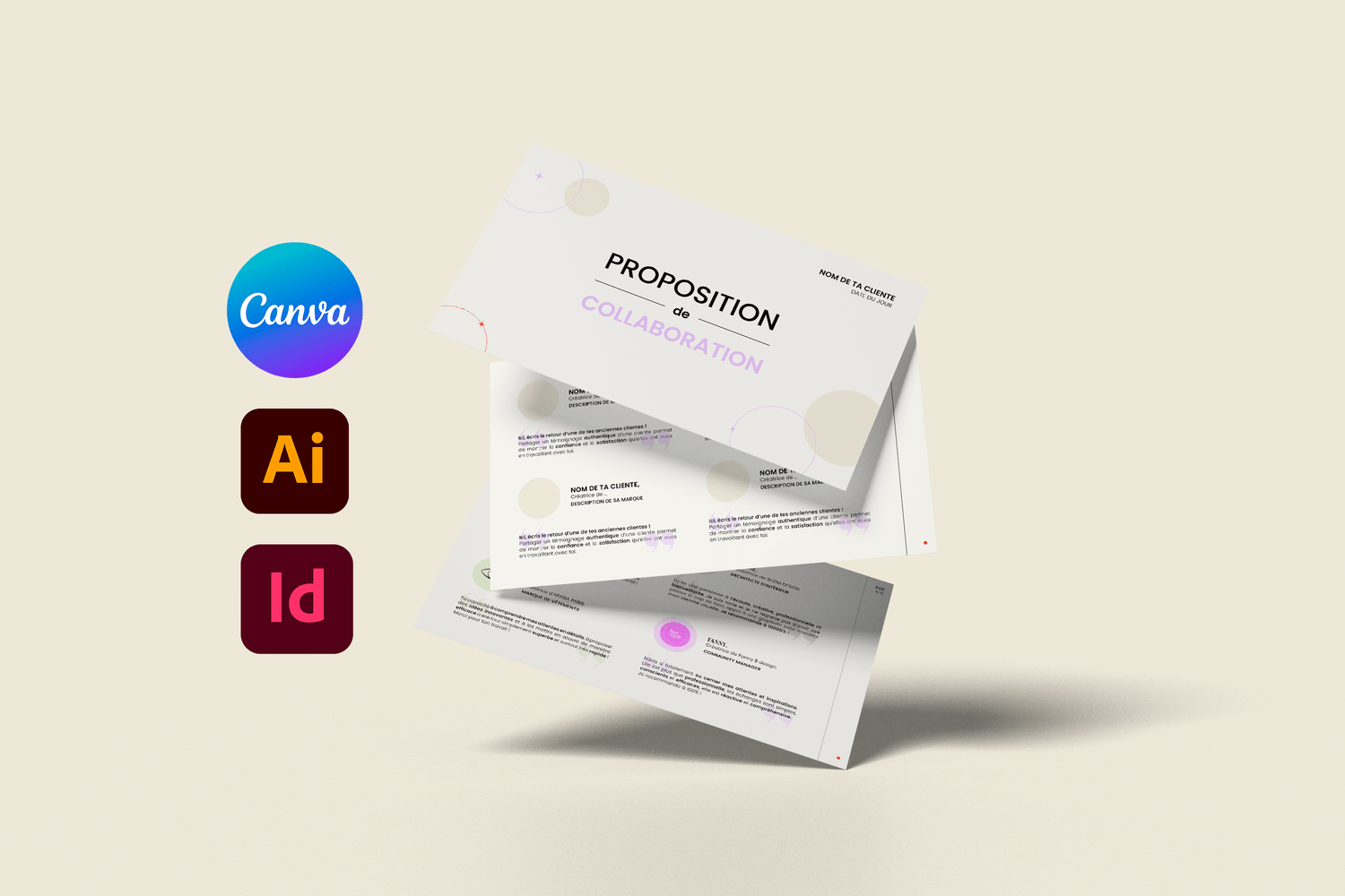La proposition de collaboration fait partie du Pack Graphiste Professionnel, qui regroupe tous les templates dont tu as besoin pour couvrir chaque étape de ta relation client.